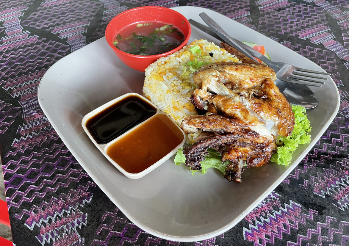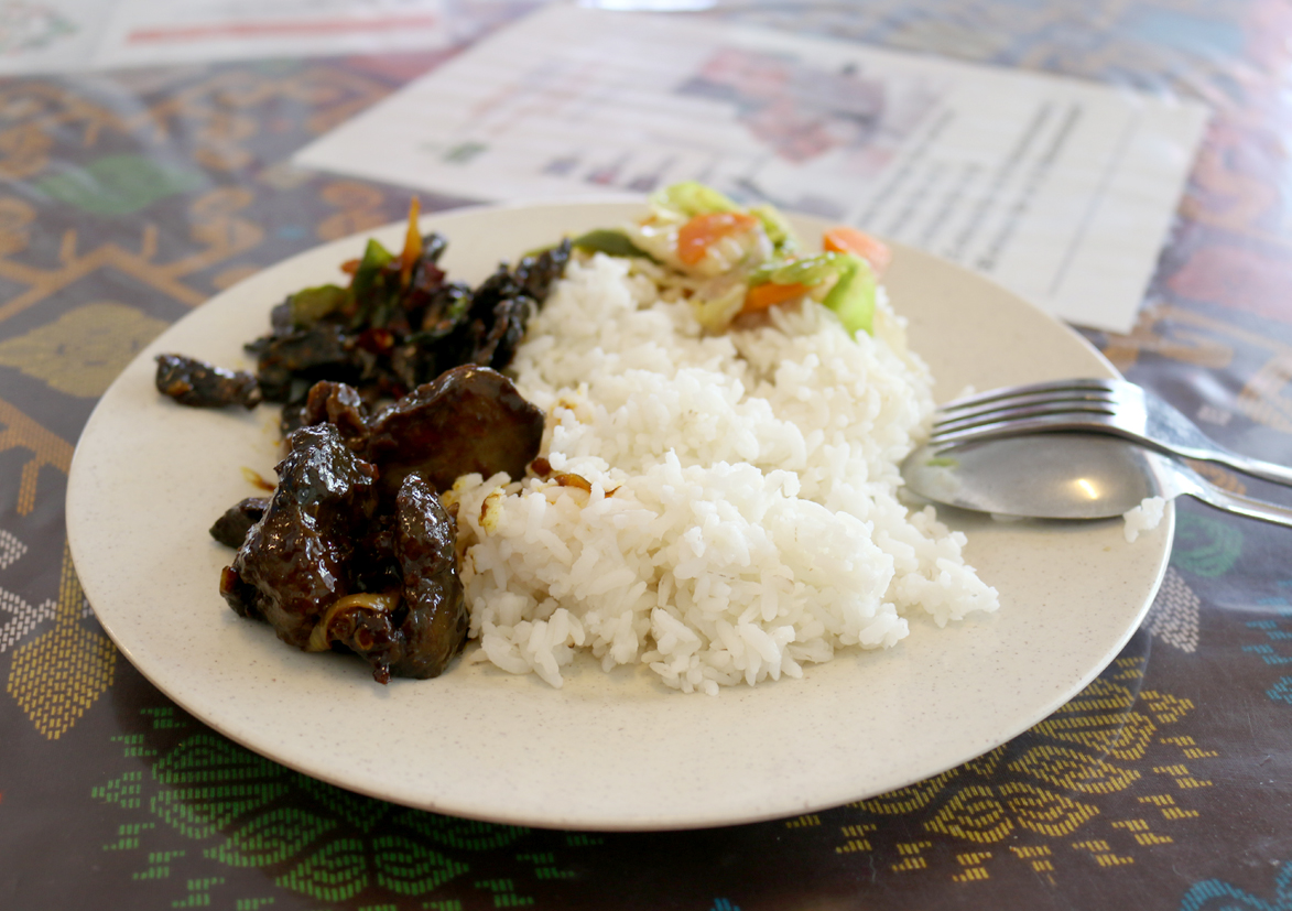 (例:ライス+牛肉炒め+野菜炒め+ドリンクで約Rm23)
