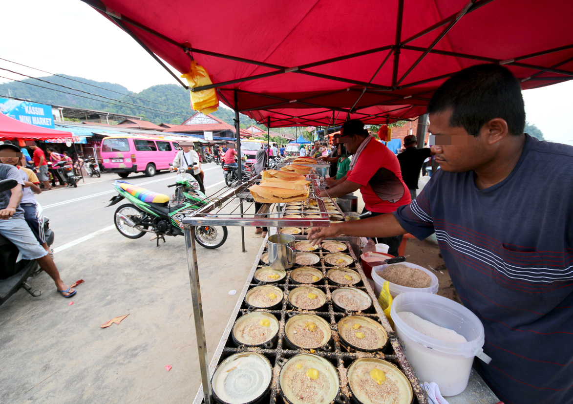 パンコール島内のロティ(全粒粉を使ったクレープのような食べ物でカレーにつけて食べる)を作る店も含め、普通マレーシアではロティは朝か日中しか作ってないのだが、この店は夜間営業なので、夜遅くに小腹が空いた時などにお薦め。