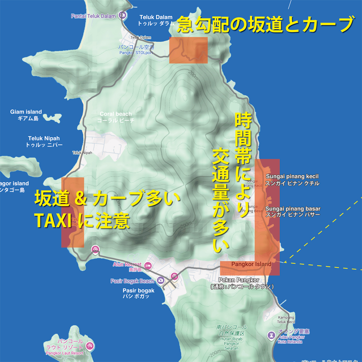 ただでさえ平野部が少なく、勾配のキツい坂道も多いパンコール島。
