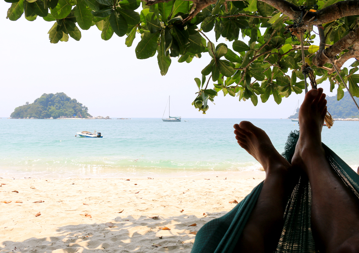 Teluk Nipahよりも行き交うボートも少なく静かなので、多くの欧米人観光客たちが、日中のんびりと日光浴を楽しむ姿が見られる。
