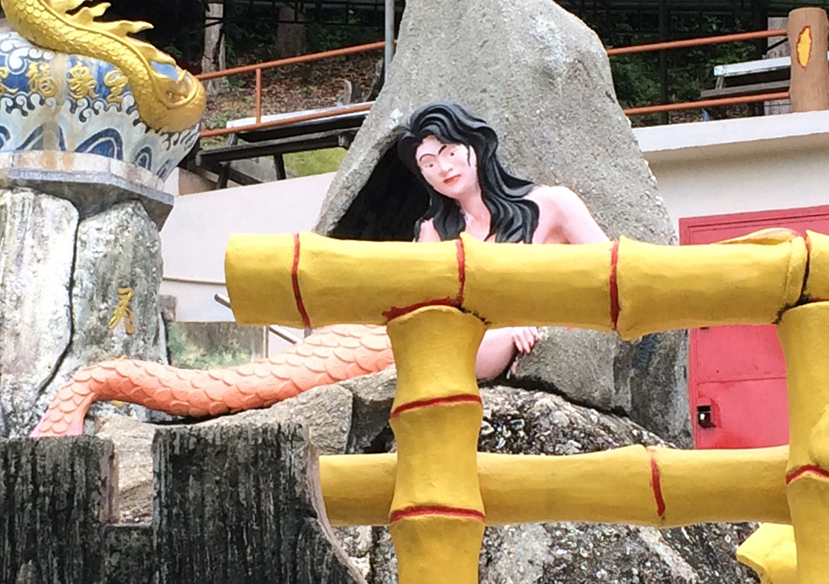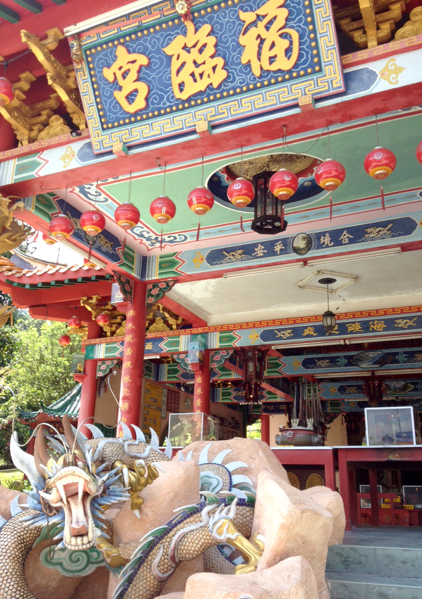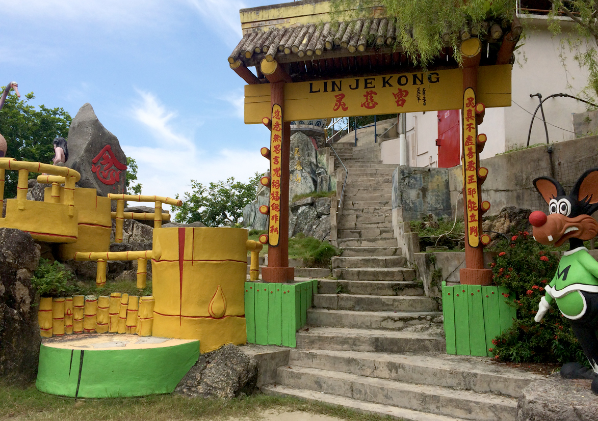 ディ○ニーキャラクターを模しそこねたオブジェが迎えてくれる小さな寺院はその他にもカオスなオブジェが点在する。