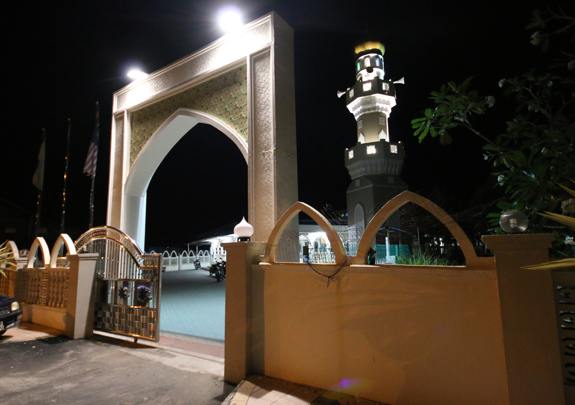 Teluk GedungやTaman Pangkor Indah地区の新しい礼拝所として、昼夜多くのモスリム教徒が建物内で祈りを捧げる。