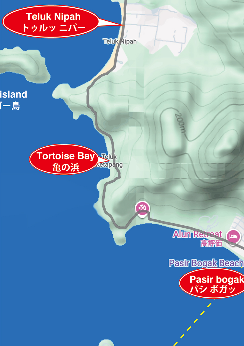 Teluk Nipah(トゥルッ ニパー)から北へ約2km。