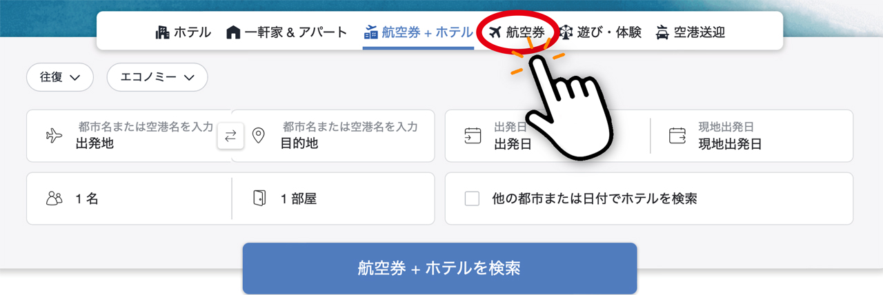 - 次に「航空券」をクリック