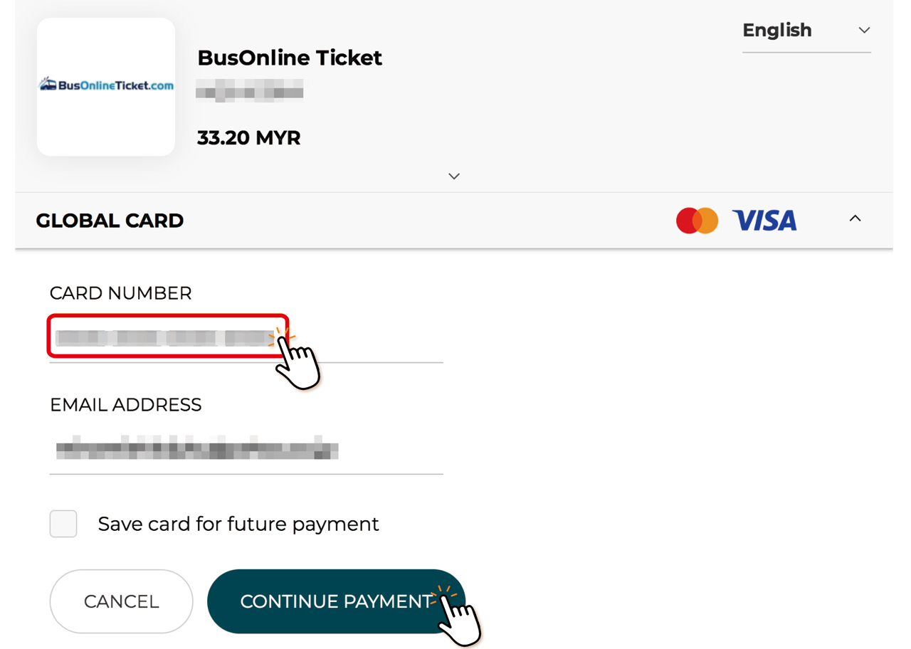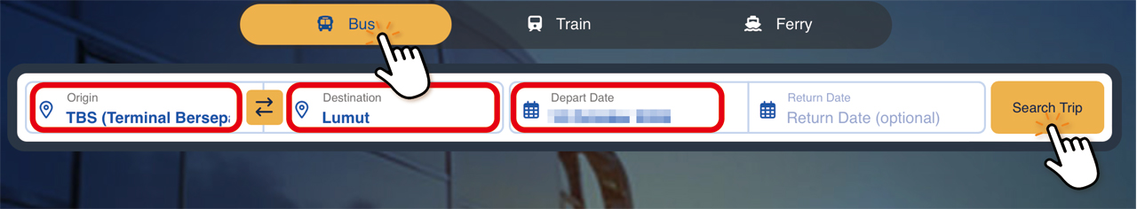 「Bus Online Ticket.com」HPの検索フロートの『BUS』を選択後、